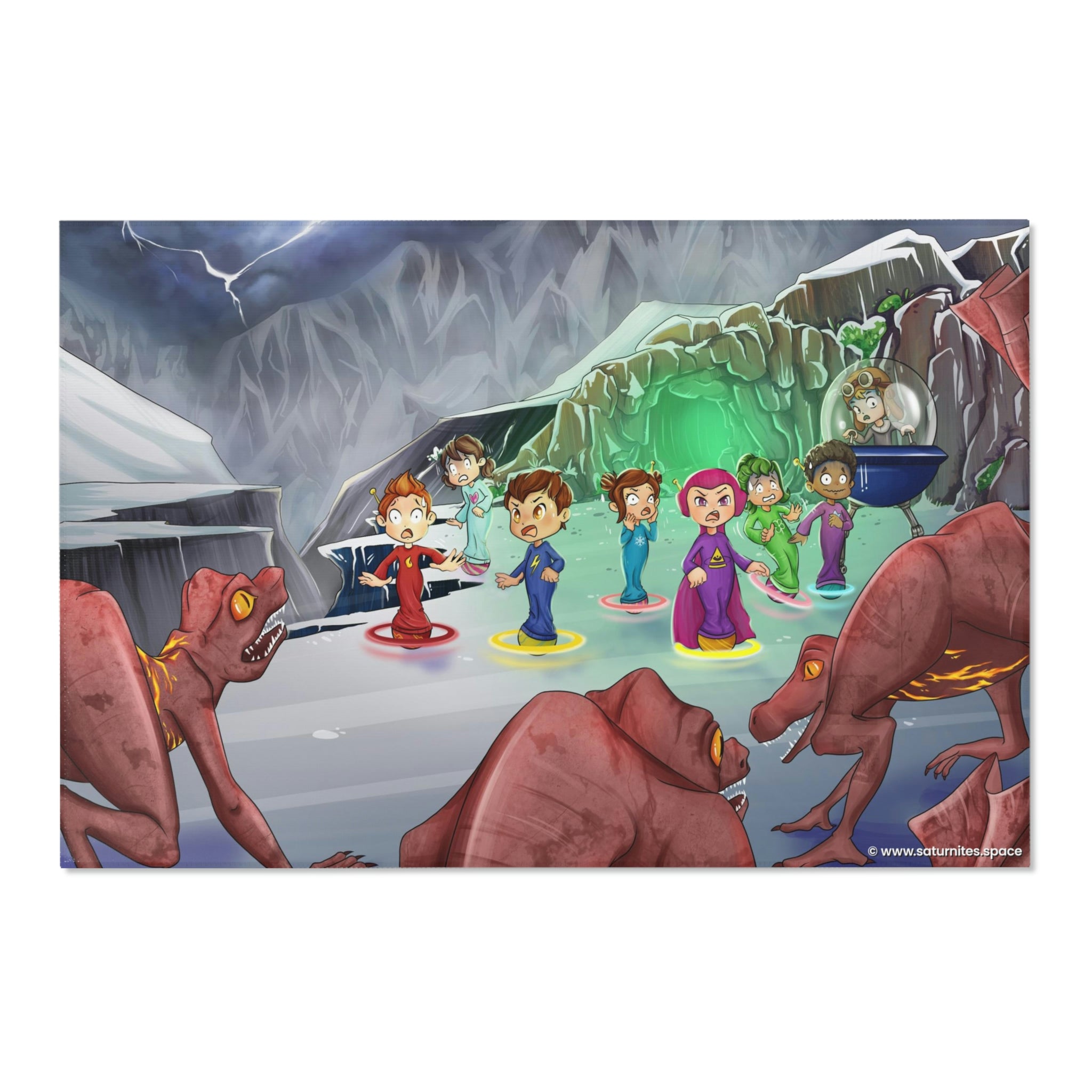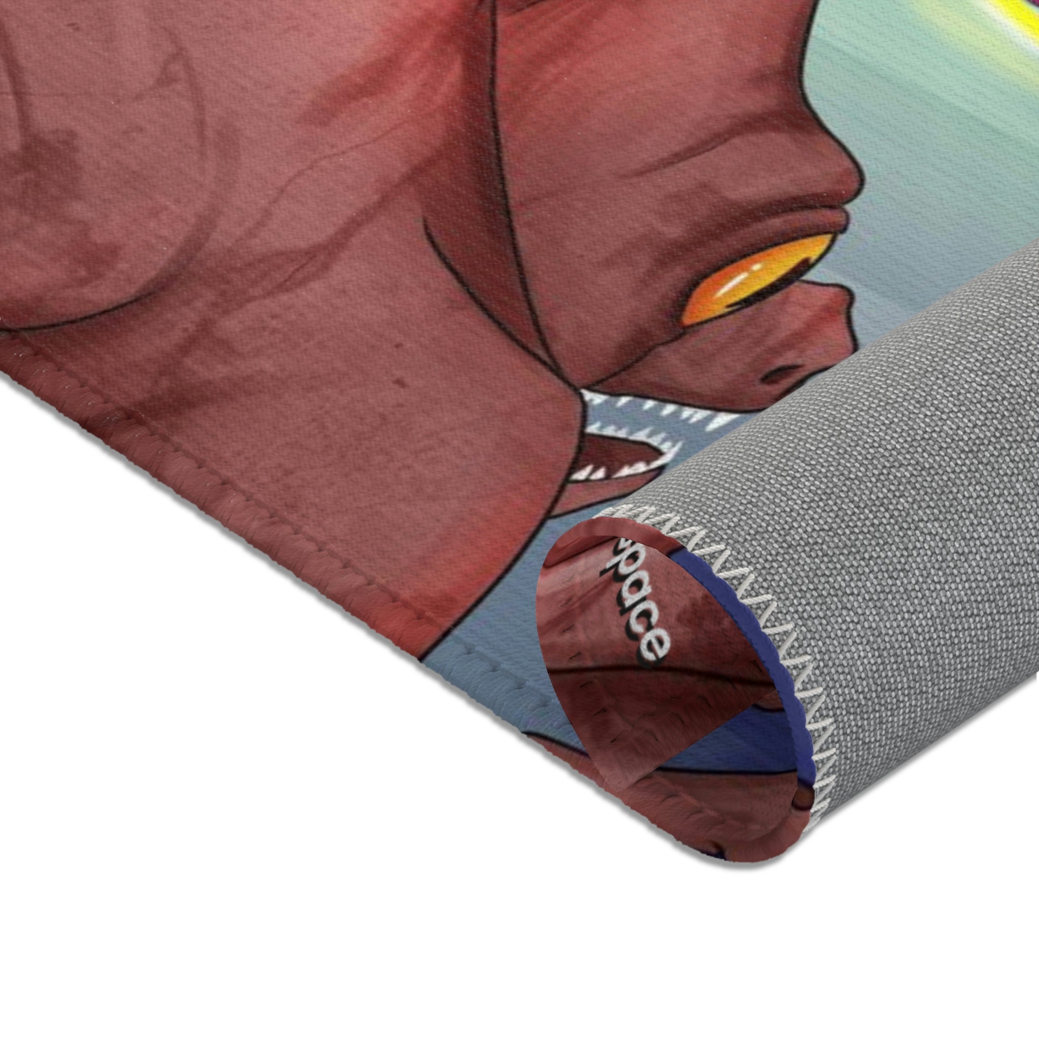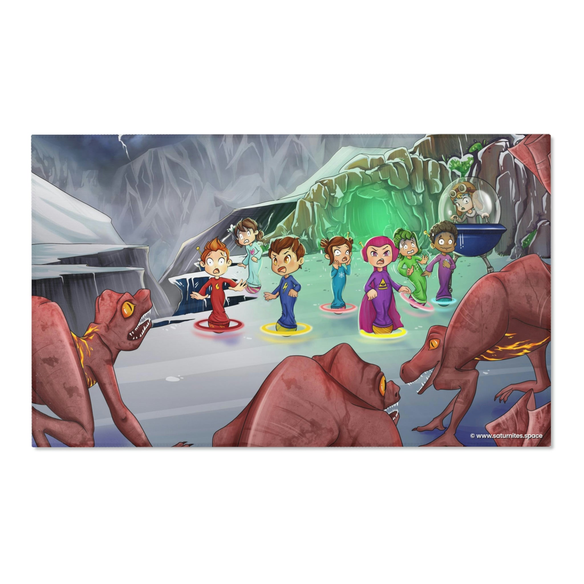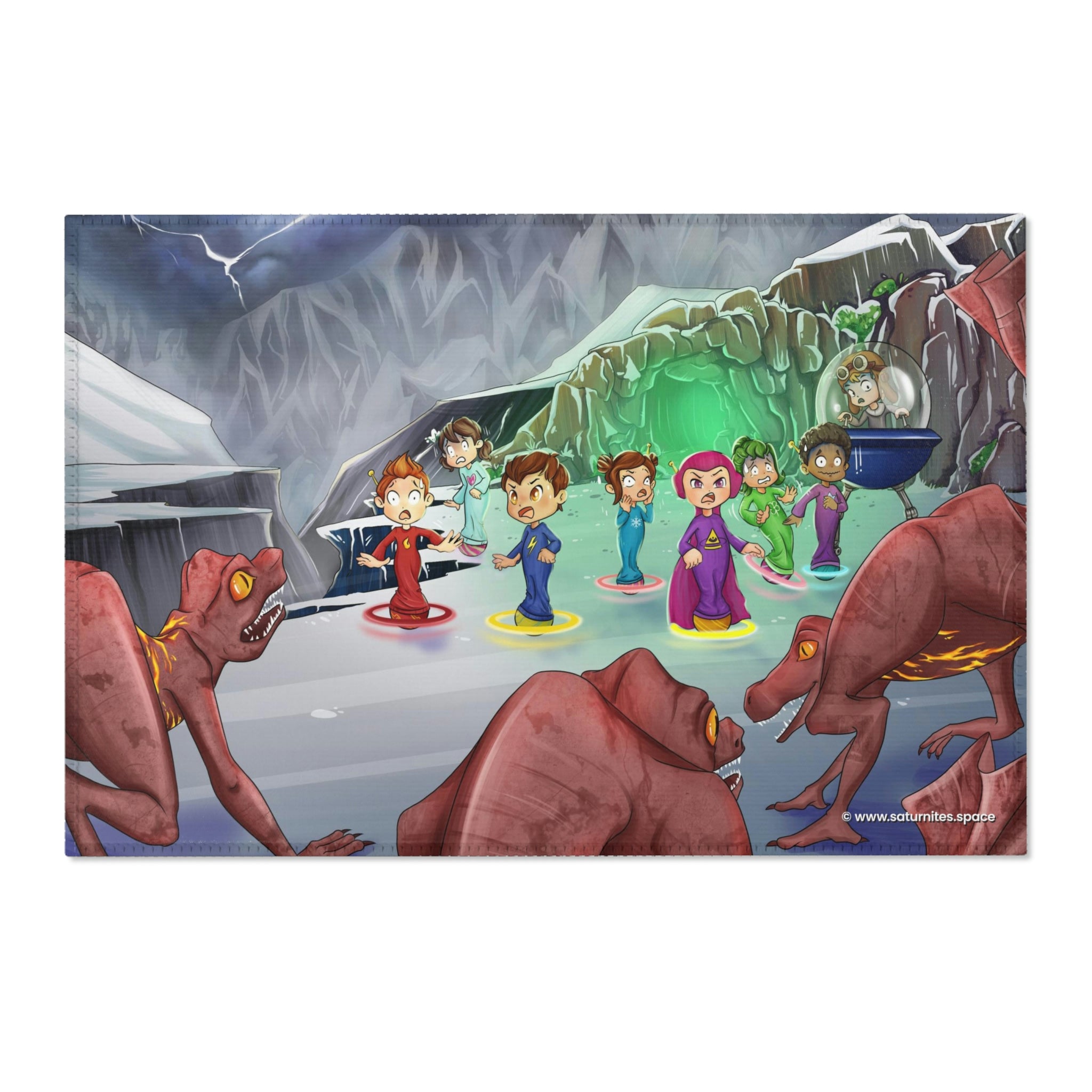 Available in 3 sizes - 24x36 inches, 36x60 inches and 48x72 inches, this durable Saturnites rug will surely make a style statement in any room. This area rug features hemmed edges and a coated backing.