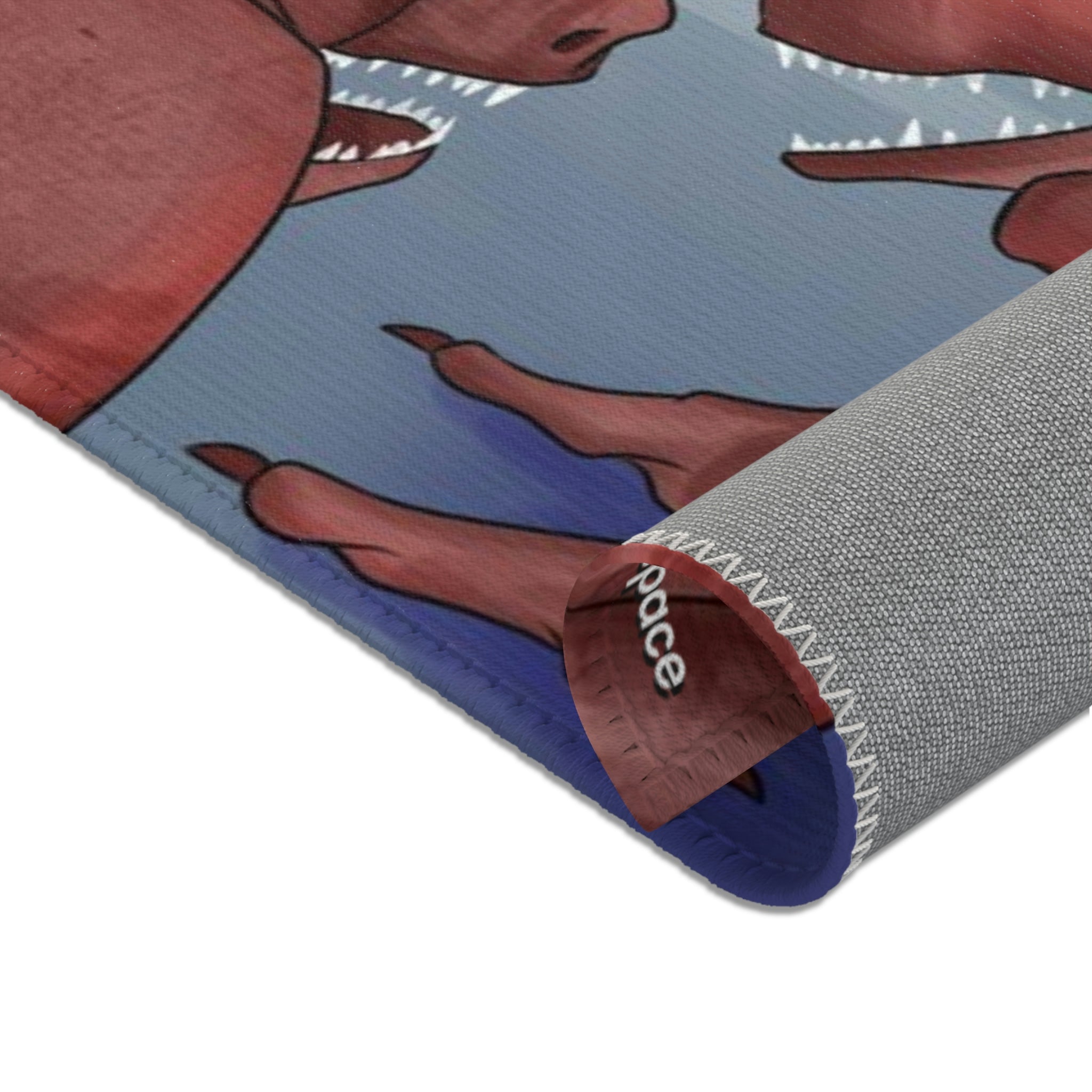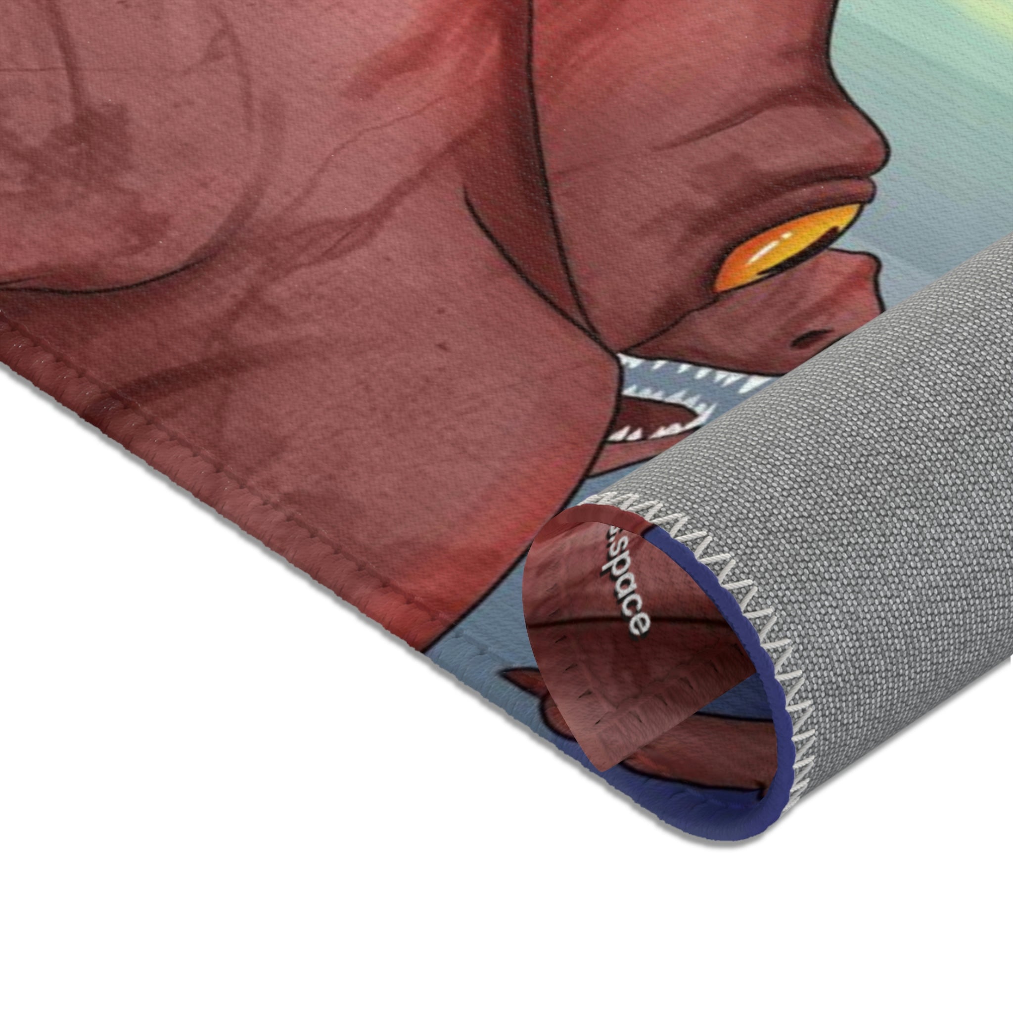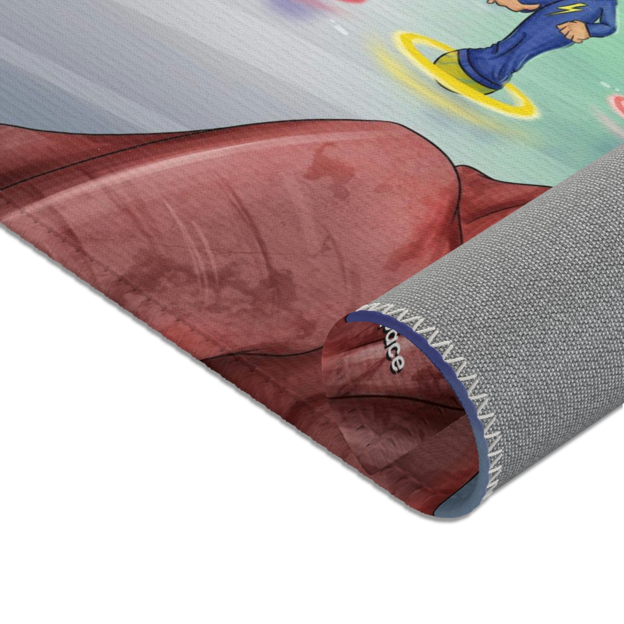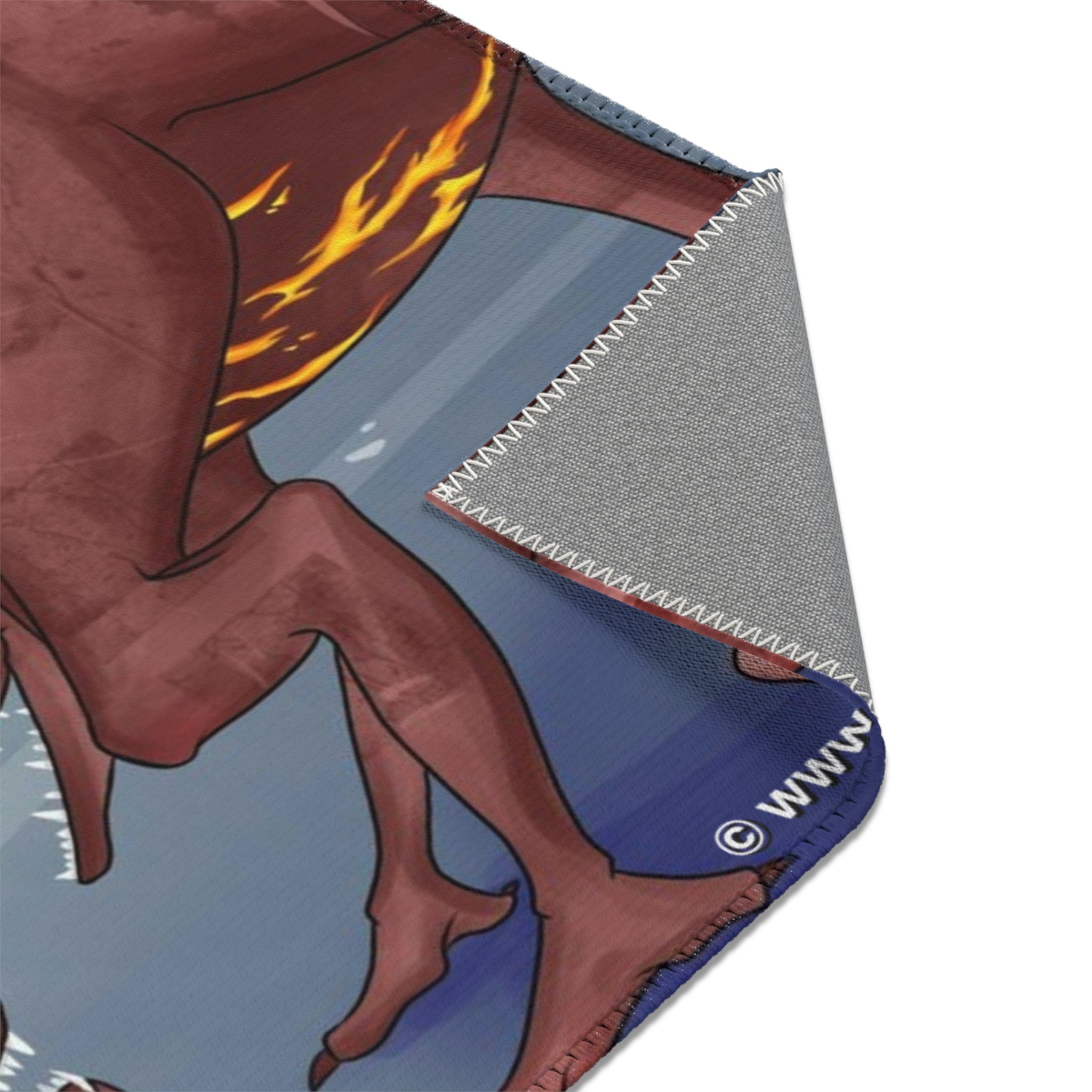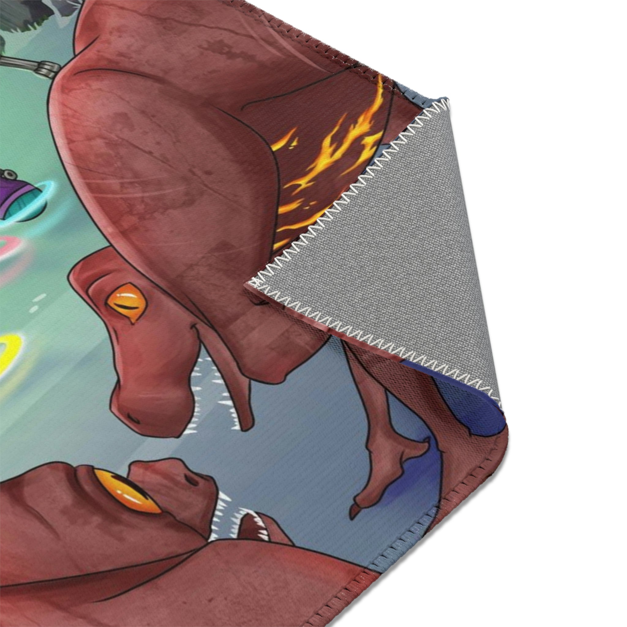 Available in 3 sizes - 24x36 inches, 36x60 inches and 48x72 inches, this durable Saturnites rug will surely make a style statement in any room. This area rug features hemmed edges and a coated backing.